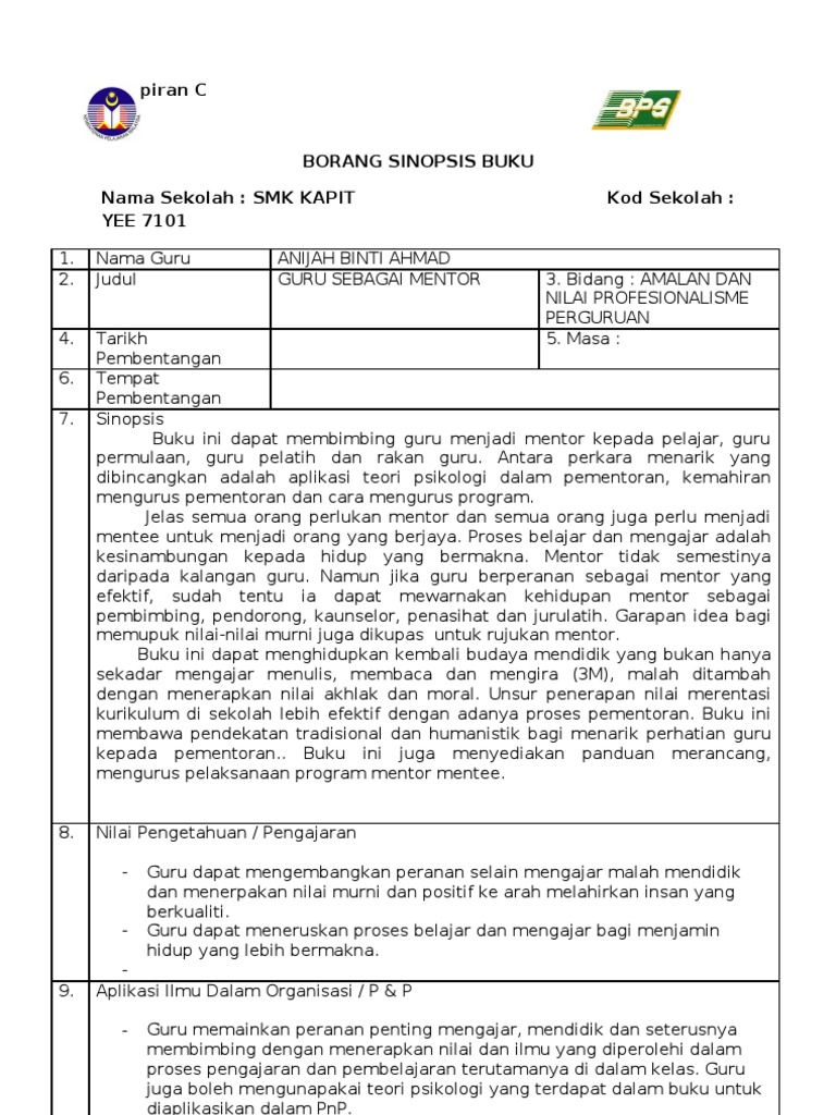 Borang Sinopsis Buku Untuk Guru Pdf